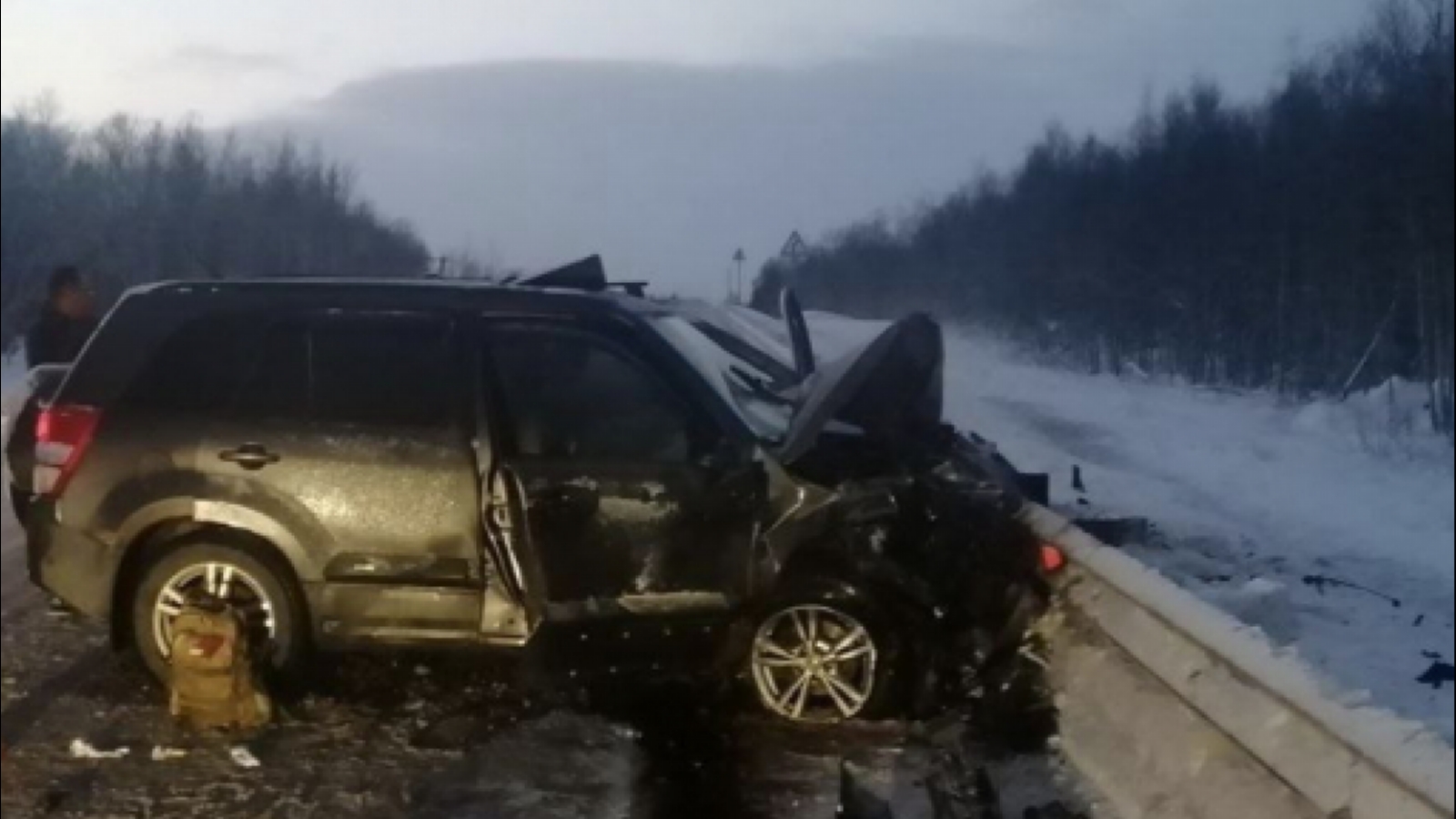 Спустя чуть более двух часов, в 15.30, на 1409 км все той же трассы «Кола» в Кольском округе произошло еще более тяжелое ДТП. 66-летний водитель Renault Scenic, двигаясь в сторону Мурманска, потерял контроль над управлением транспортного средства, выехал на полосу дороги, предназначенную для встречного движения, где совершил лобовое столкновение с Suzuki.