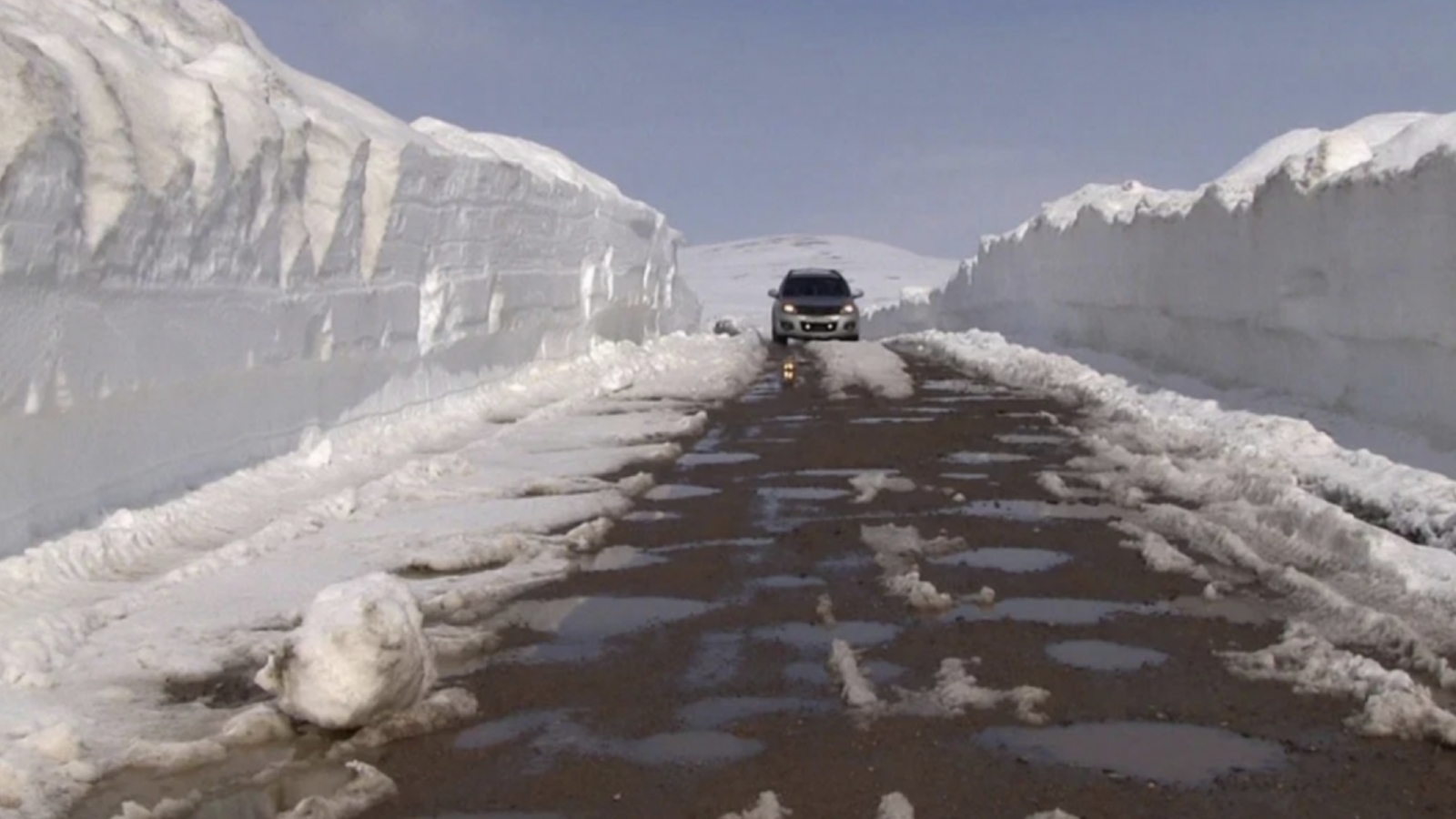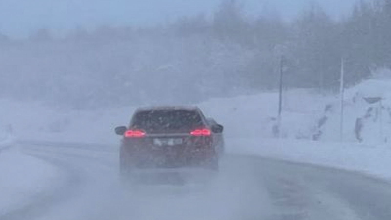 Судя по видео, дорожники приводят трассу в порядок практически в условиях нулевой видимости. Им приходится прорубать дорогу в сильную метель.Кроме того, из-за сложных погодных условий еле видно движущуюся впереди технику и дорожные знаки.