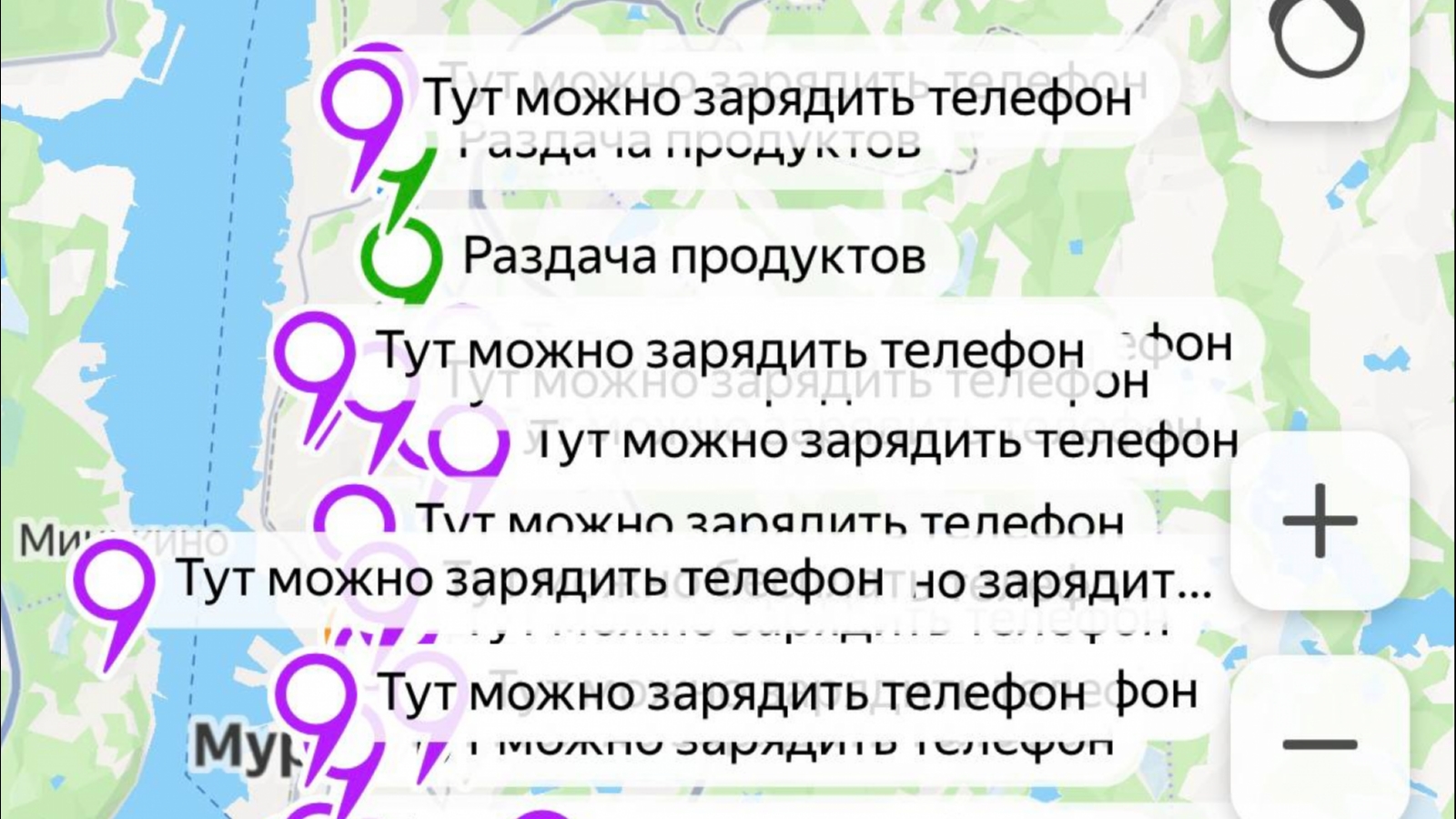 На них можно узнать адреса работающих магазинов, пунктов обогрева, полевых кухонь и мест для зарядки телефонов.