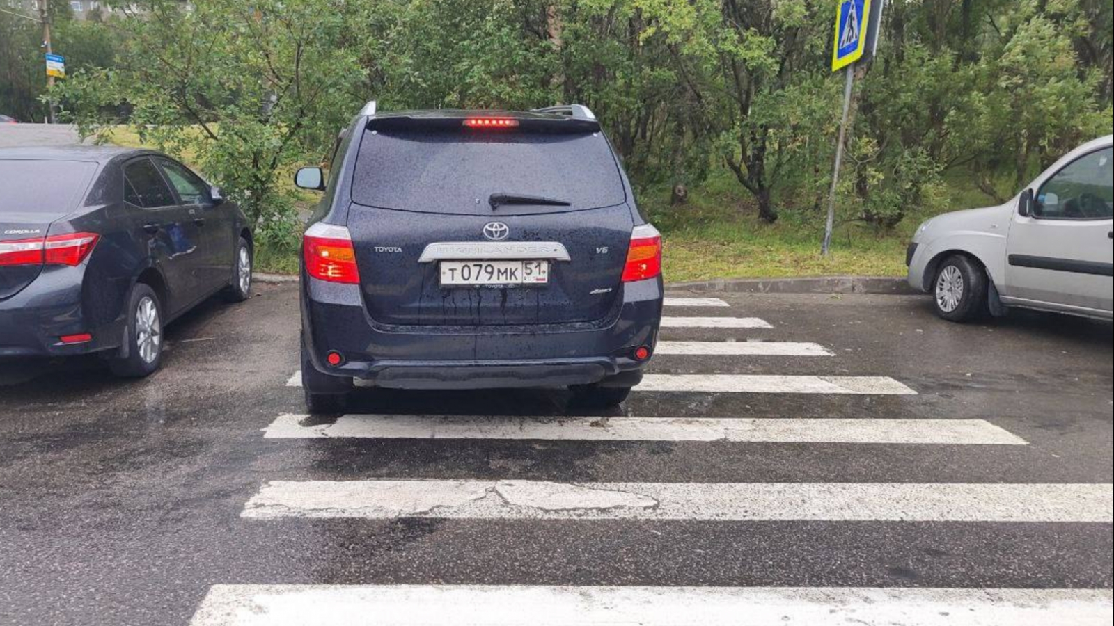 В Мурманске водитель припарковался прямо на пешеходном переходе. Всё произошло на переходе к остановке общественного транспорта у «Атлантики».