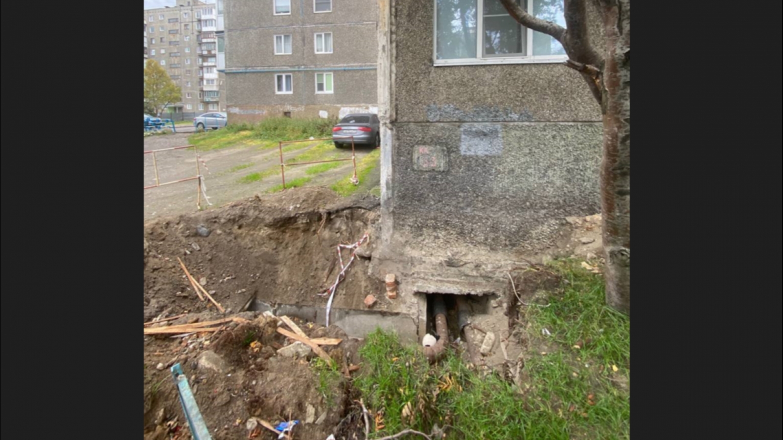 В Мурманске жители на проспекте Героев-североморцев, 70 жалуются на огромную яму под домом. Её вырыли рабочие в начале августа.