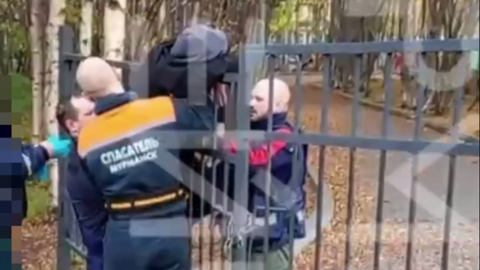 В заборе школы №11 города Мурманска подросток застрял в заборе. Вероятно, парень хотел перелезть через него и зацепился.
