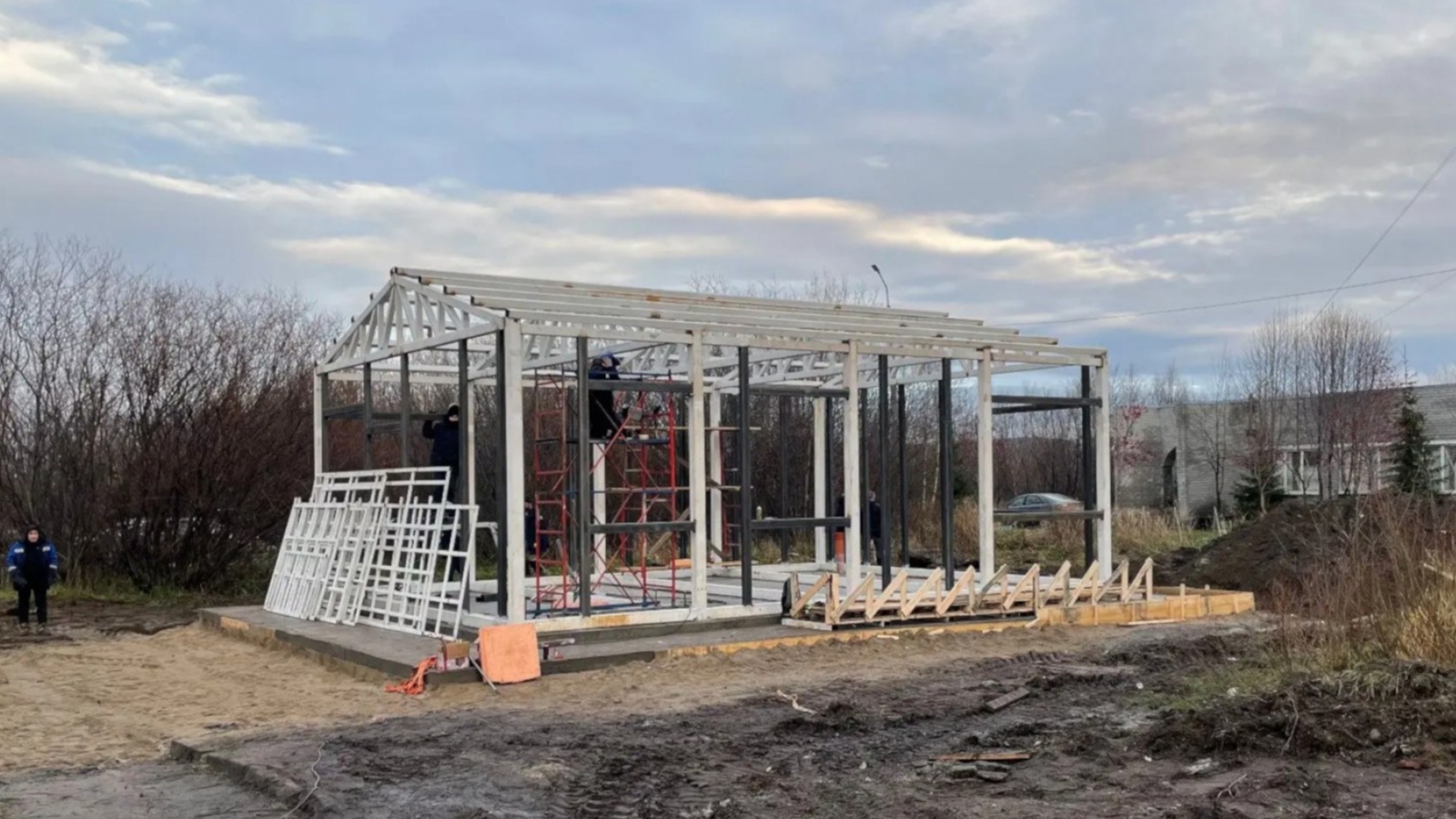 В настоящее время подготовлена фундаментная плита, отмостка, ведутся работы по сборке модульного здания.