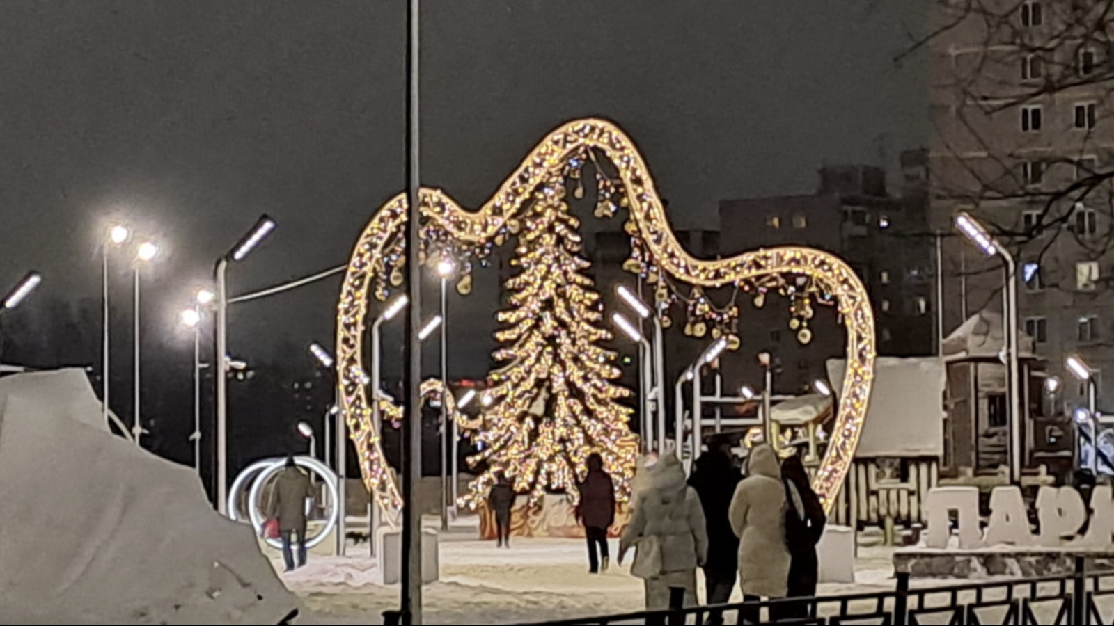Так, ёлки зажглись на берегу озера Глубокое и на улице Беринга.