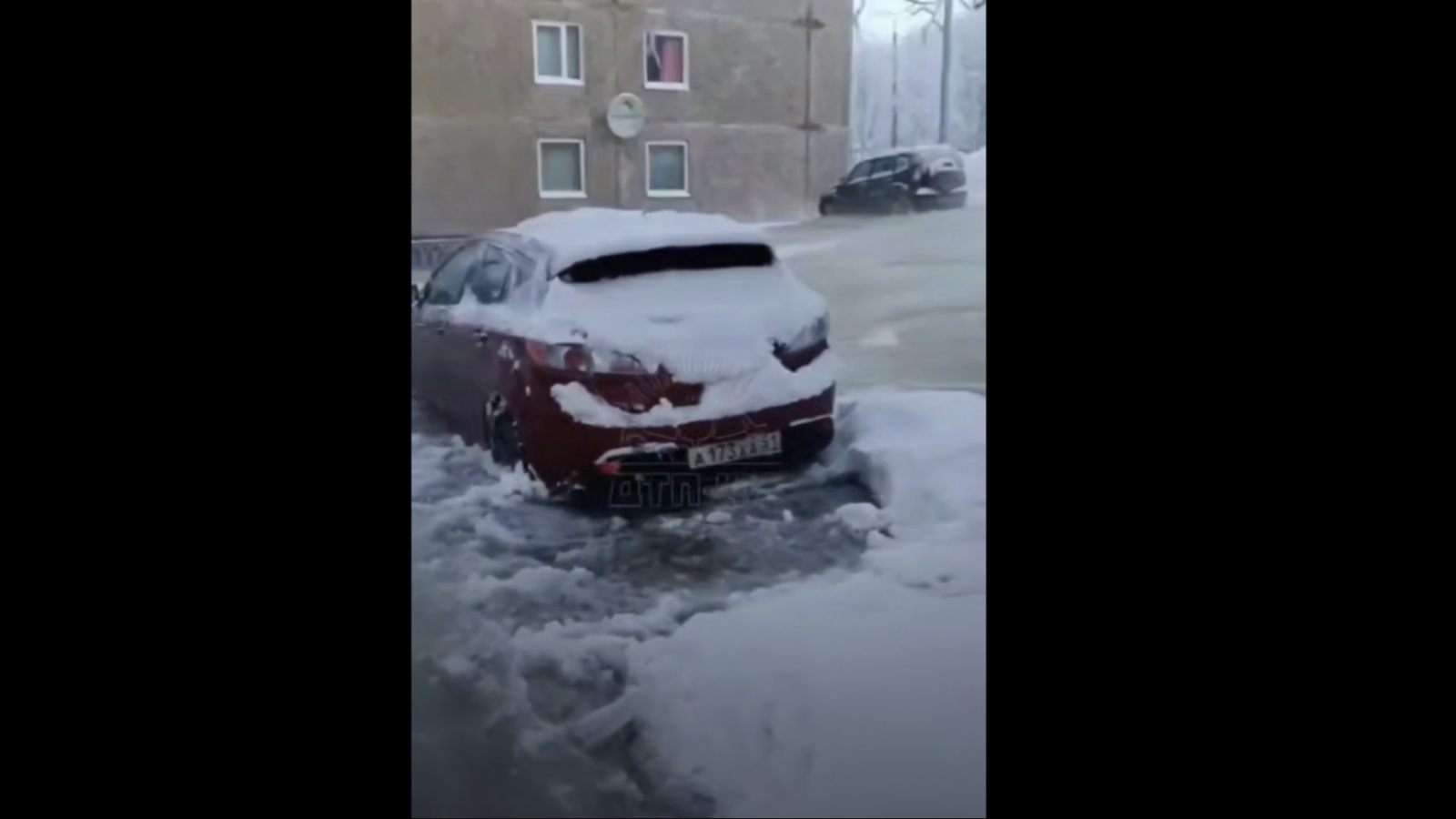 На кадрах, опубликованных северянами, видно, как лёд сковал подтопленные автомобили.