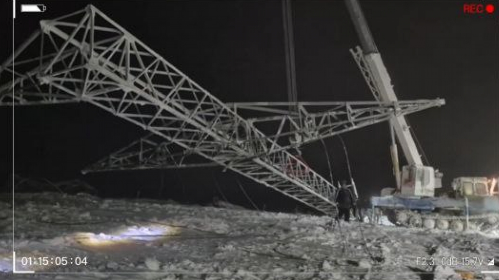 «Сегодня планируется установка ещё одной постоянной опоры, – прокомментировали в компании. - На площадке 30-ти градусный мороз и шквалистый ветер».