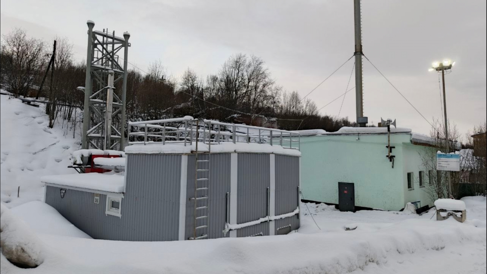 Смонтированы ограждающие конструкции склада топлива, роллетная система дверей, наносится огнезащита. Прокладка тепловых сетей находится на заключительном этапе.