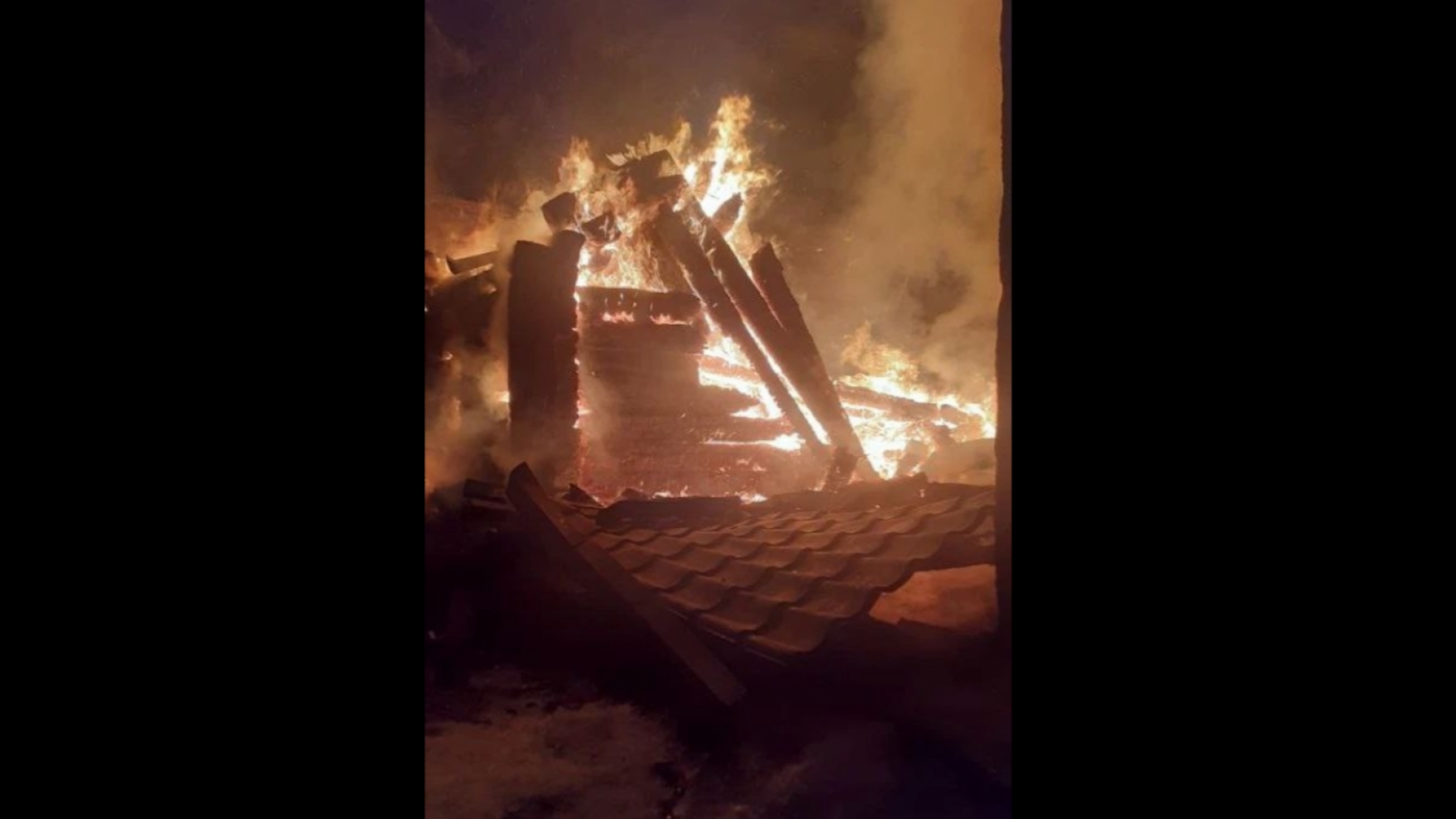 В результате пожара двухэтажный деревянный гостевой дом обгорел полностью по всей площади 80 кв.м.