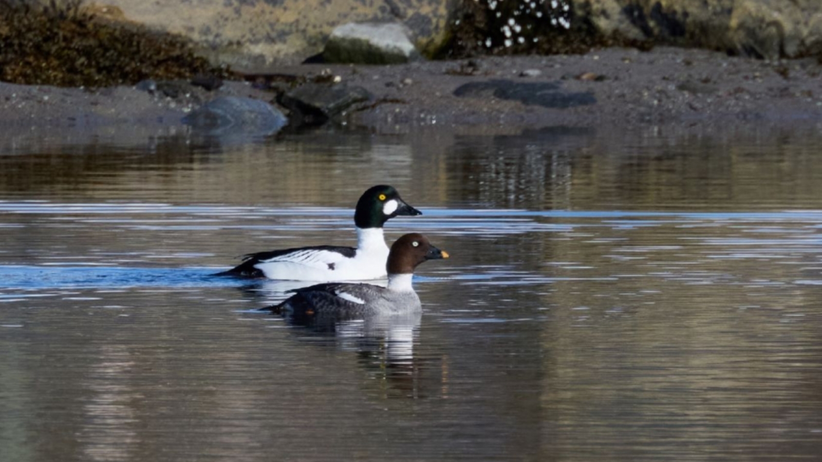 Гоголи вернулись после зимовки в Кандалакшский залив Белого моря раньше обычного. На север они прилетают парами и небольшими стайками.